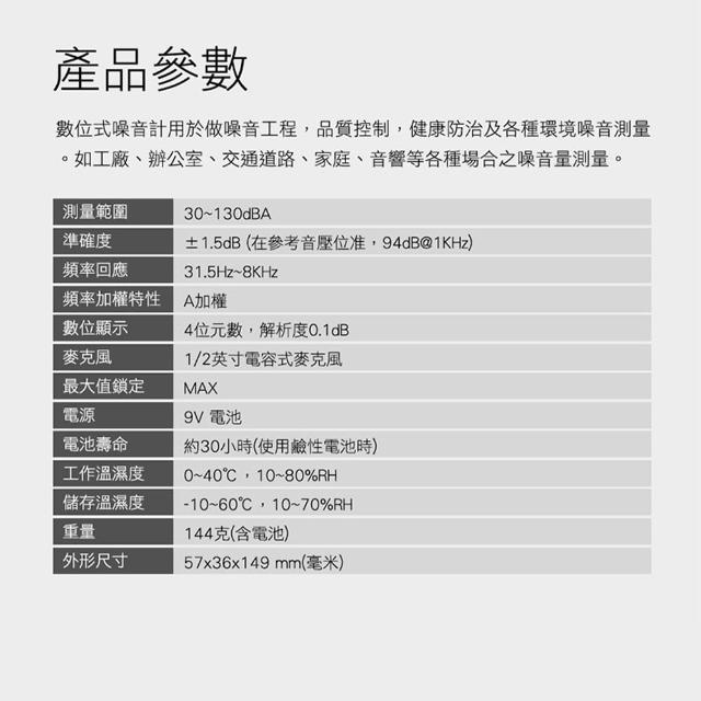 數位分貝儀 噪音計 標準聲級計 噪音監測器 測音儀 聲級計 分貝器 噪音檢測儀 聲壓級測試 噪音評估儀 165-SLM