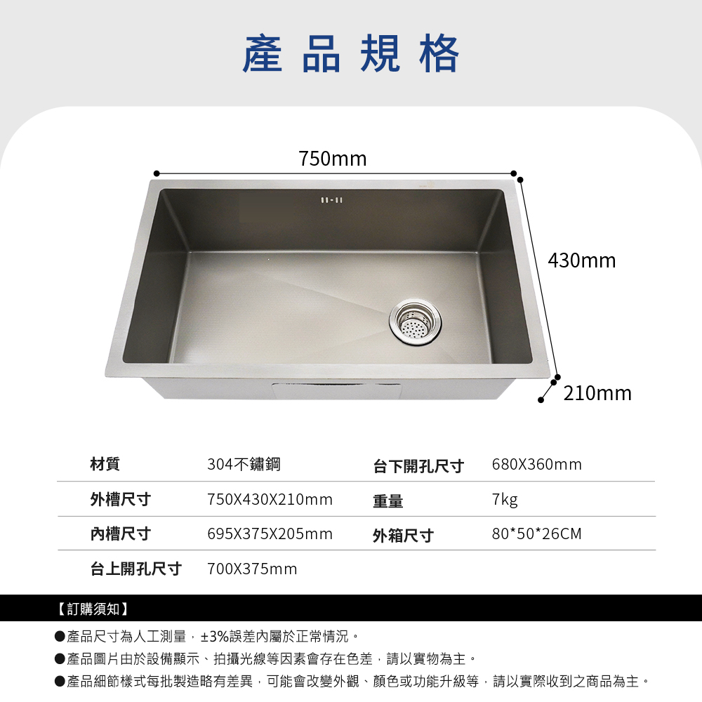 智殿 304不鏽鋼水槽 廚房洗碗槽 單槽水槽 料理洗滌槽 嵌入水槽165-KS7843 嵌入式水槽 廚房水槽 廚下型水槽