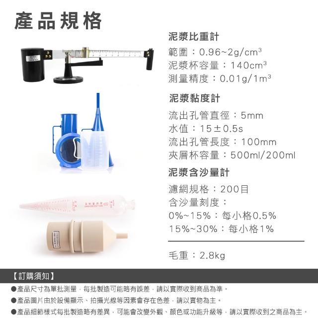 3合1泥漿黏度測試組 泥漿測試儀 過濾網 泥漿含沙量計 165-ANY1 泥漿比重計 泥漿黏度計 量杯 泥漿杯 泥漿黏度
