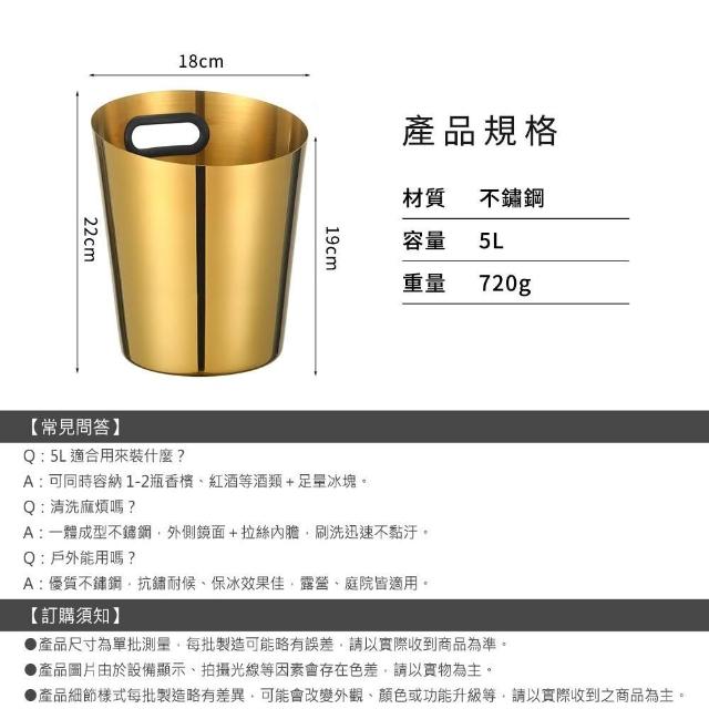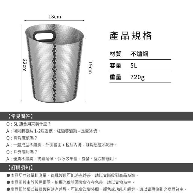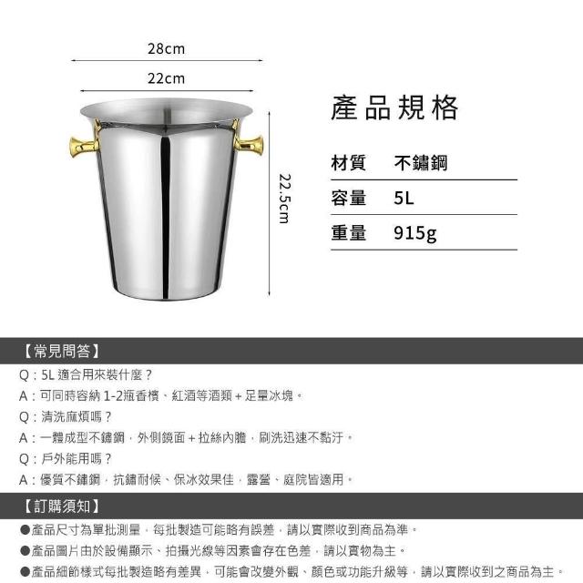 智殿 冰鎮桶 凍酒桶 冰酒桶 香檳桶 紅酒桶165-SUSBK5L 不鏽鋼冰桶 保冰桶 保冷桶 冰塊桶 紅酒冰桶 啤酒桶