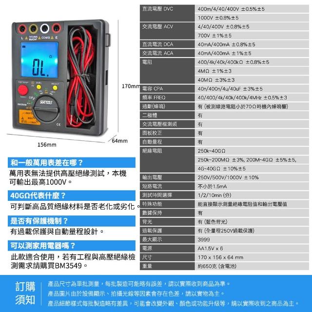 智宅+ 絕緣高阻計 絕緣阻抗測試器 高阻計 兆歐表 165-BM3548 數位萬用錶 絕緣電阻計 數位萬用表 阻抗測試計