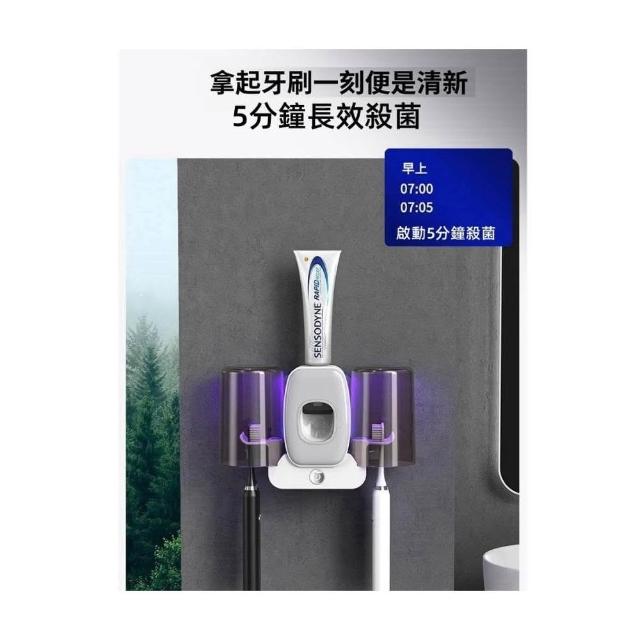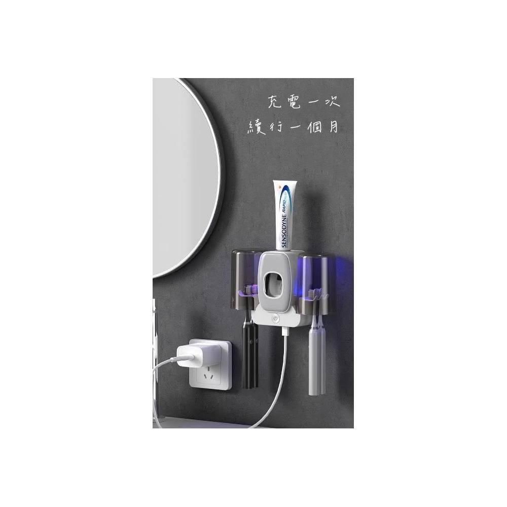 智能紫外線牙刷 消毒器(智能紫外線牙刷消毒器 牙刷抗菌器 牙刷架 牙刷消毒器 浴室置物架 自動擠牙膏器 光能無線充電)