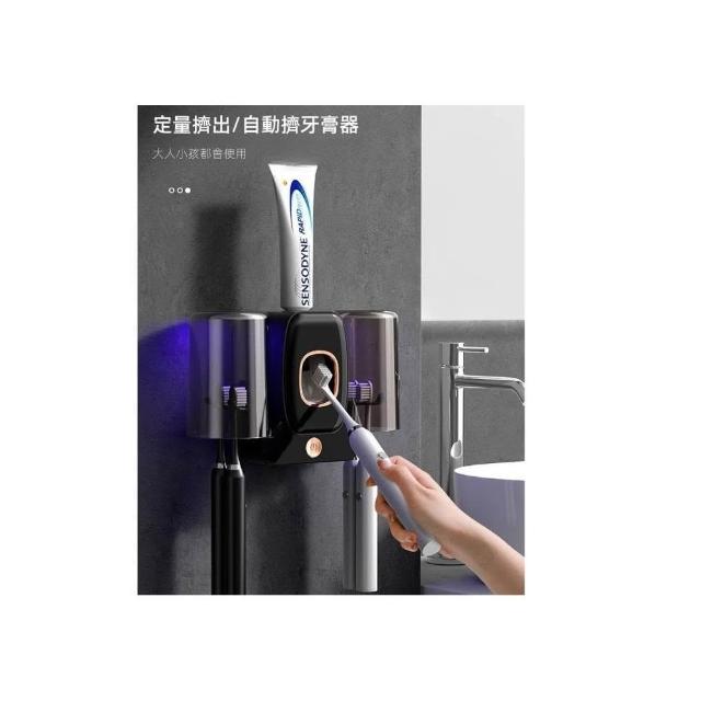 智能紫外線牙刷 消毒器(智能紫外線牙刷消毒器 牙刷抗菌器 牙刷架 牙刷消毒器 浴室置物架 自動擠牙膏器 光能無線充電)