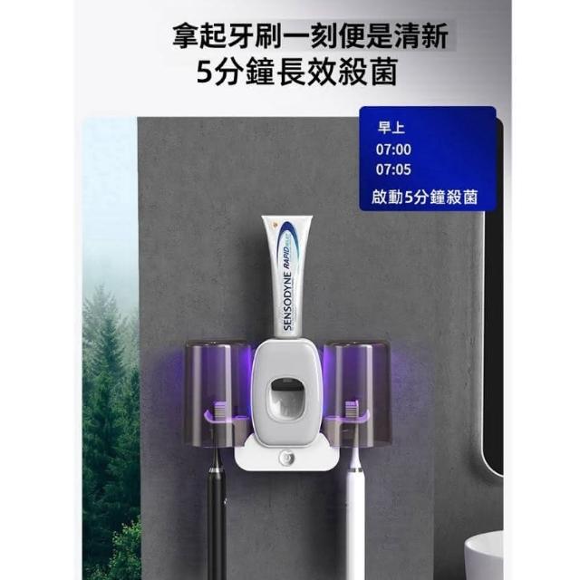 智能紫外線牙刷 消毒器(智能紫外線牙刷消毒器 牙刷抗菌器 牙刷架 牙刷消毒器 浴室置物架 自動擠牙膏器 光能無線充電)
