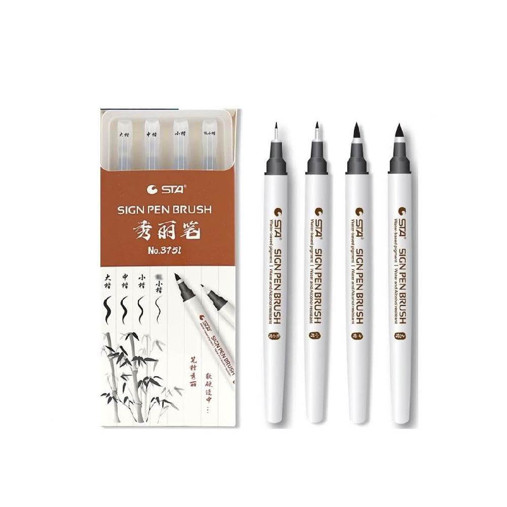 STA斯塔 秀麗筆 整套4隻筆 防水 軟筆書法練字 專用 極小楷 練毛筆字大楷 中楷 小楷 極細 抄經筆 墨水毛筆