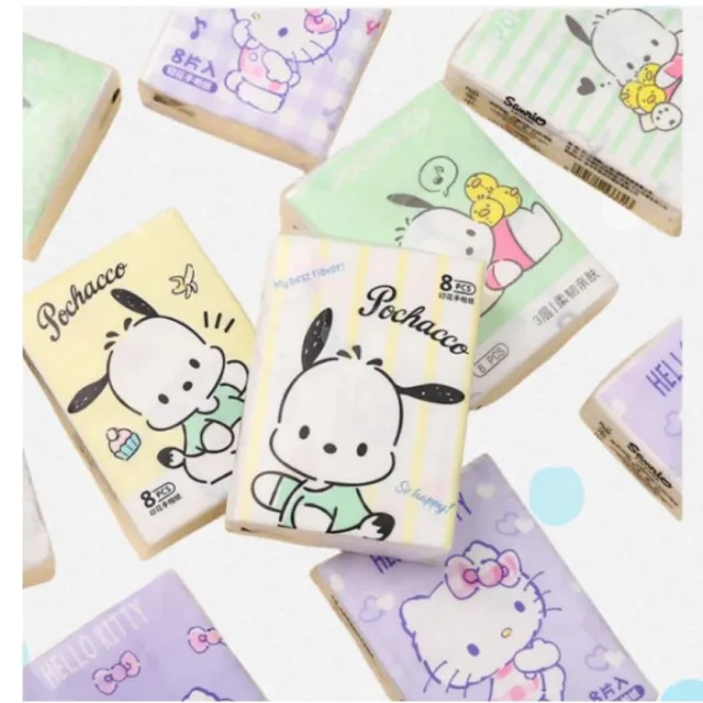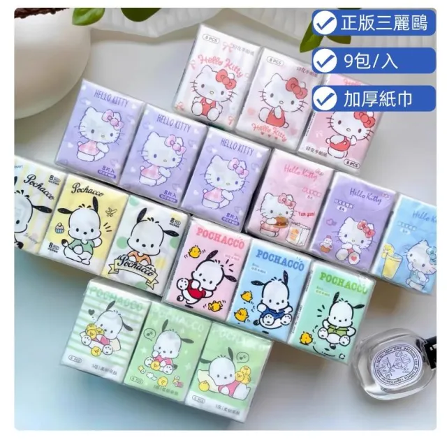 SANRIO 三麗鷗便攜紙巾 面紙 厚面紙 SanrioCharacters 三麗鷗 無香印花紙手帕 9包裝 衛生紙