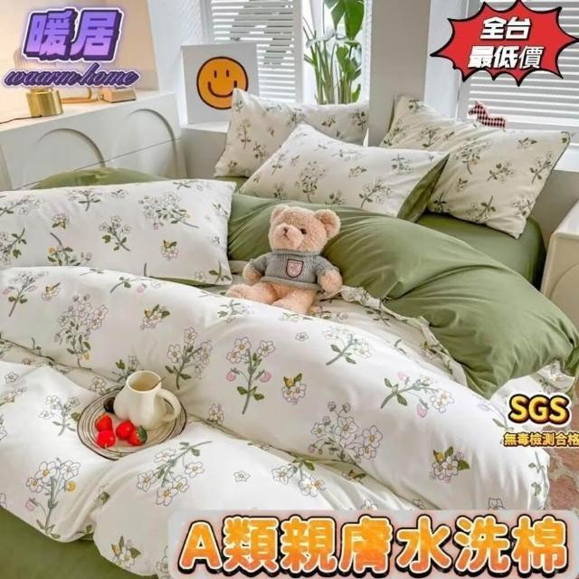 多彩家居 日式水洗棉床包四件組 北歐風 加高35公分 單人床包雙人 加大 雙人床包組/床單/兩用被/枕頭套被套