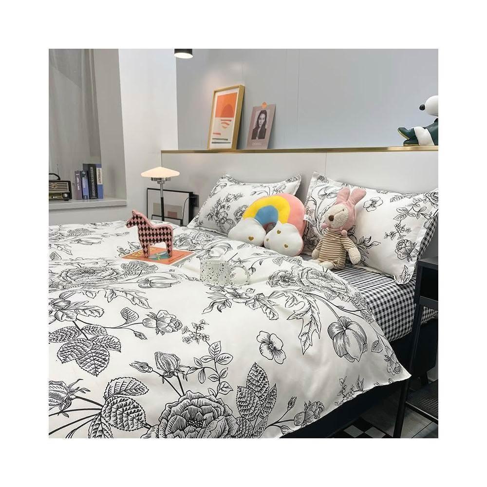 多彩家居 日式舒柔棉床包四件組 北歐風 防菌抗螨 加高35公分 單人床包雙人 加大 雙人床包組/床單/兩用被/枕頭套被套