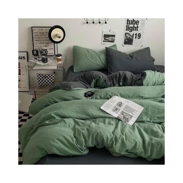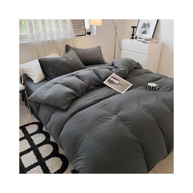 多彩家居 素色水洗棉床包被套組 親膚裸睡床包組 床包高35公分舒柔棉床罩組 單人床罩三件組 標準加大雙人床單被套組 枕套