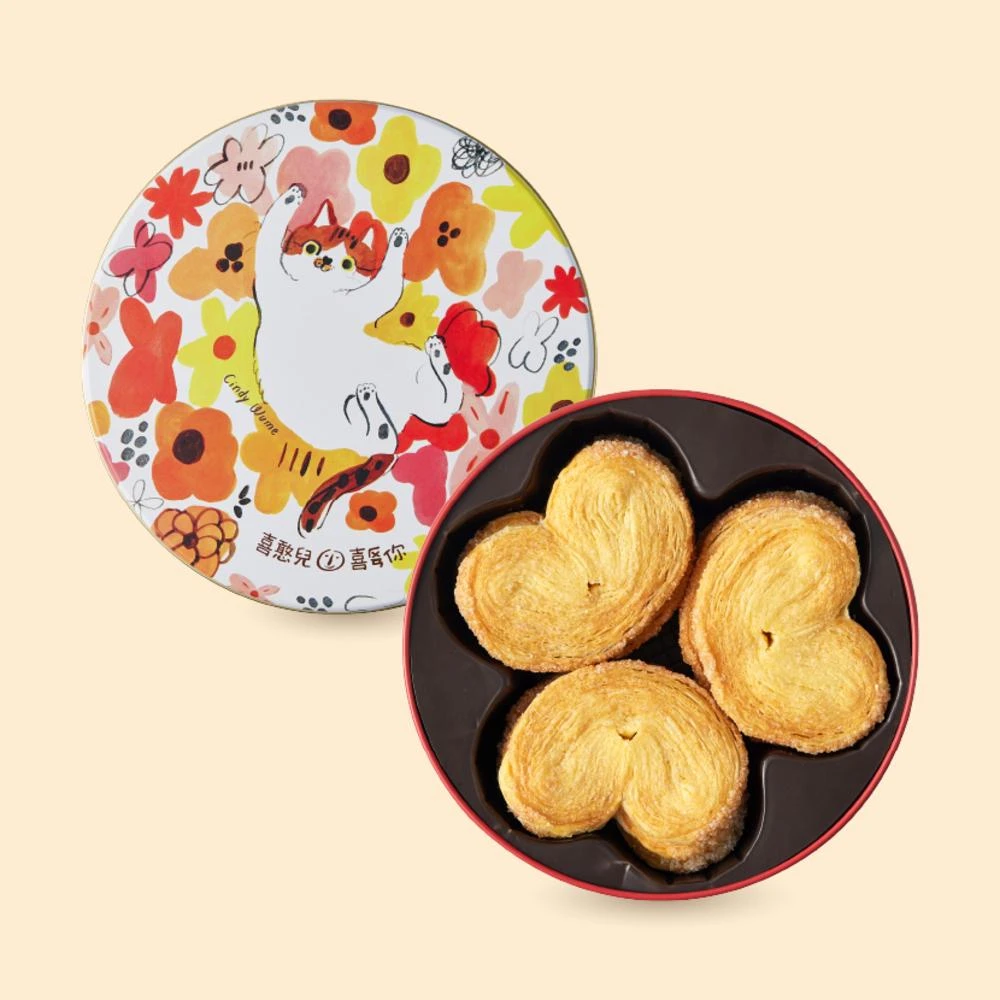 喜憨兒基金會伴手禮|花悅繽紛鐵盒(千層蝴蝶酥*24) 附提袋