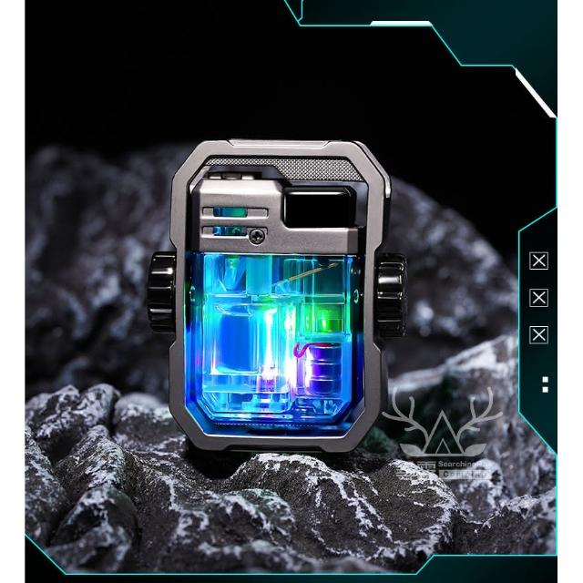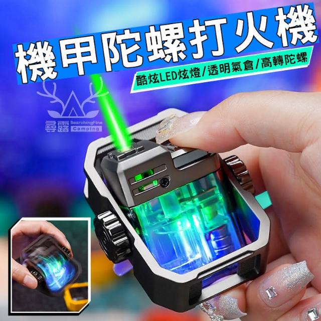 尋露指尖陀螺打火機 酷炫LED彩燈 透明氣倉 防風綠焰打火機(兩色任選)