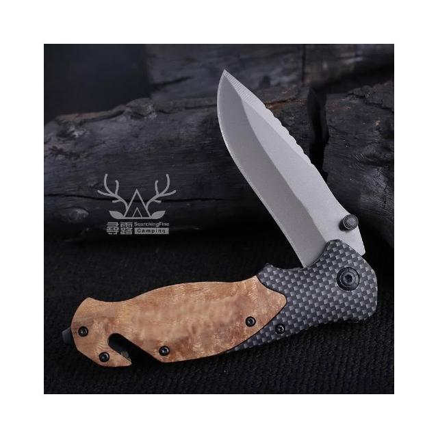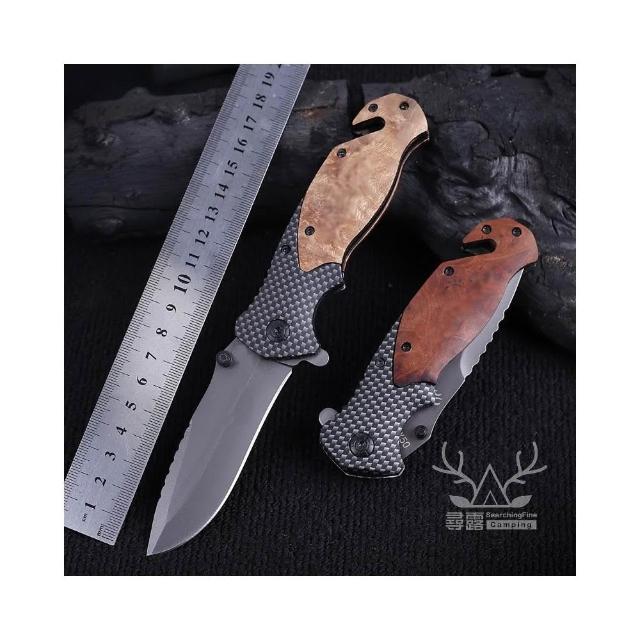 尋露戶外求生刀 木柄戶外刀具荒野求生折疊刀X50