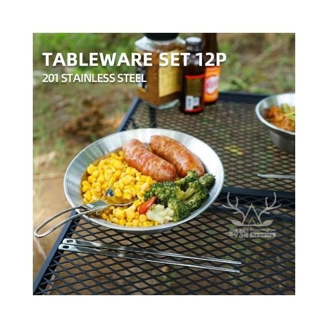 尋露戶外餐具12件套便攜式露營餐具組 自駕遊 燒烤 露營 家用餐盤小碗碟子