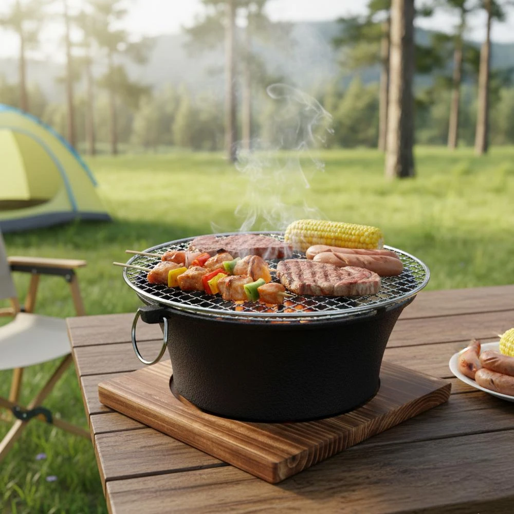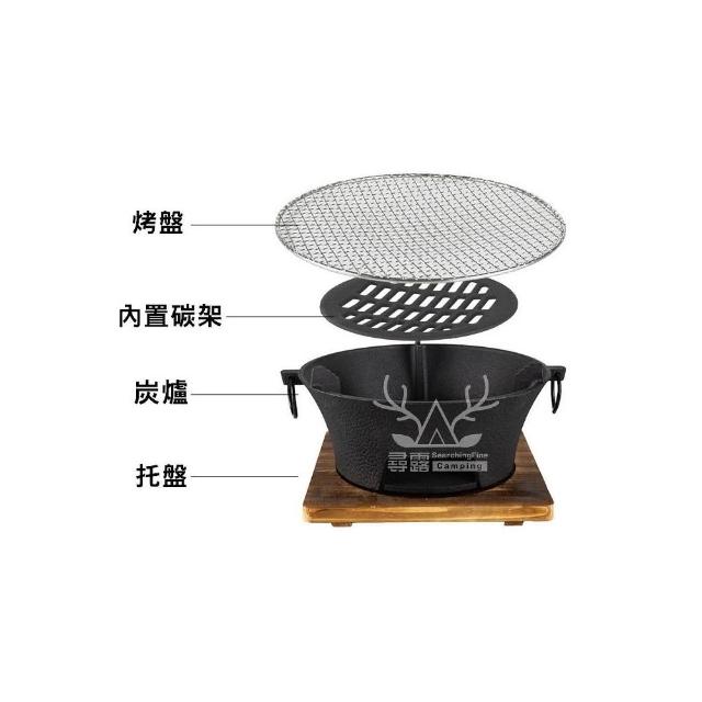 尋露鑄鐵烤爐 戶外露營 圍爐 煮茶 取暖爐 鑄鐵碳爐 野營 木炭燒烤架 烤肉 火鍋 碳烤火爐(25cm)