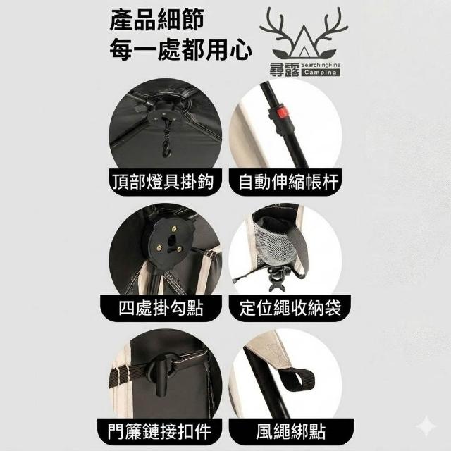 尋露BLACKDOG 黑狗 自動穹頂天幕速開戶外露營自立免搭建黑膠帳篷遮陽棚