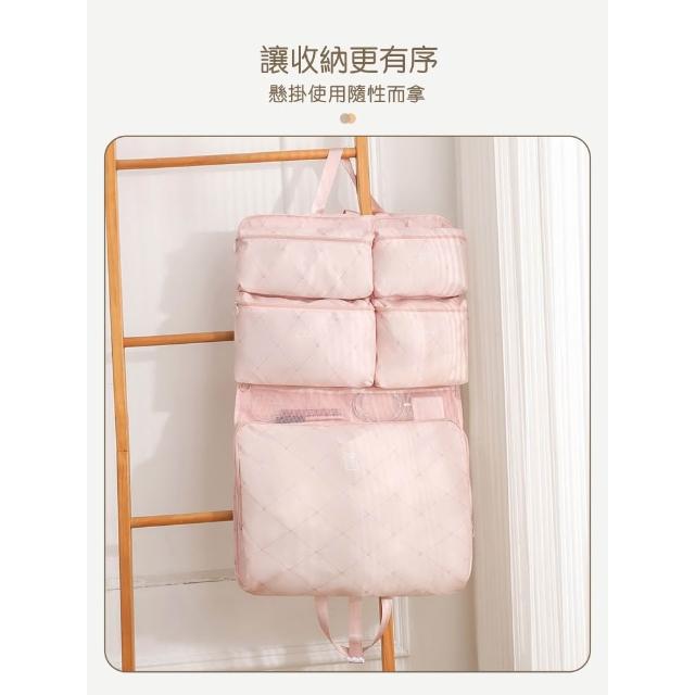 旅行收納袋 懸挂式六合一 盥洗收納包 旅行袋 大容量 可折疊 輕量 盥洗包 衣物收納袋 内衣 襪子 台灣現貨