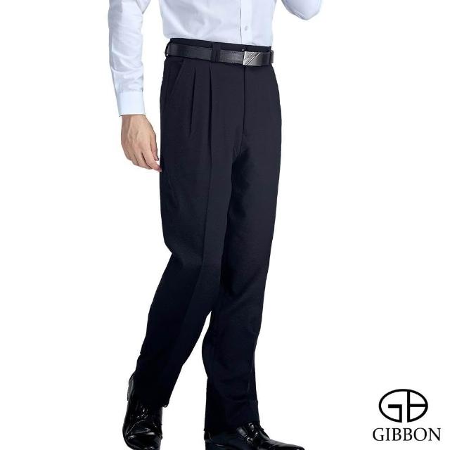 GIBBON 吉朋經典紳士素面舒適打摺西裝褲‧暗藍