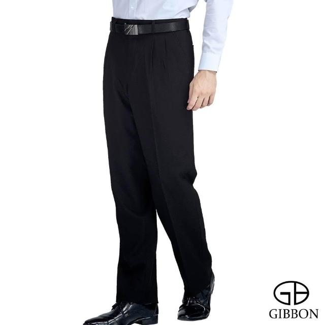 GIBBON 吉朋精簡商務素面舒適打摺西裝褲‧黑色