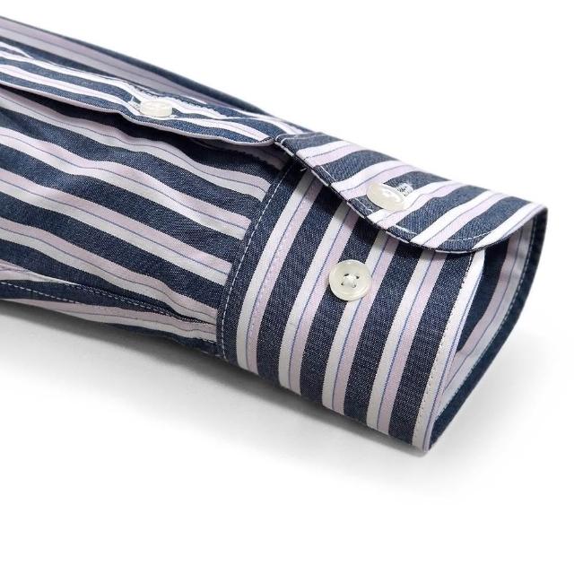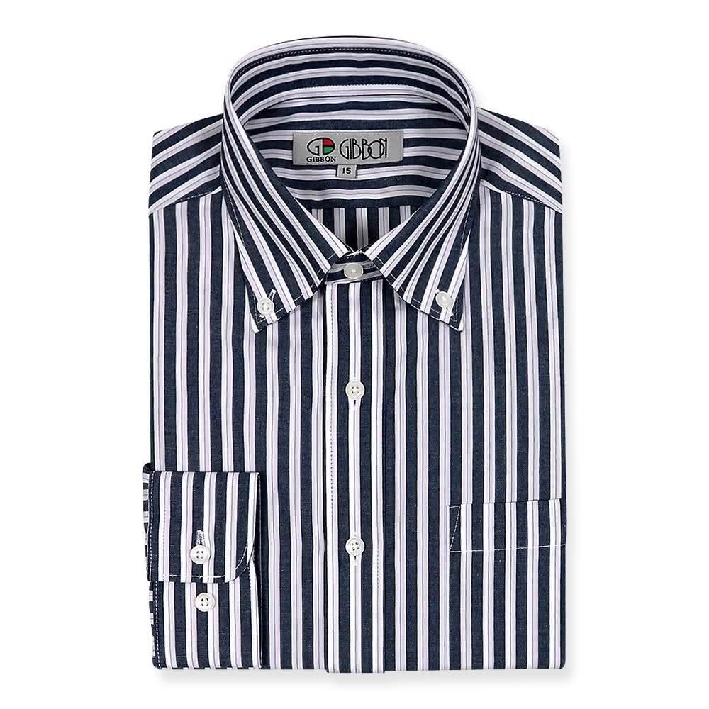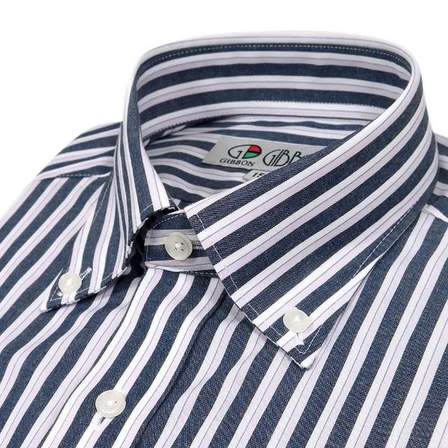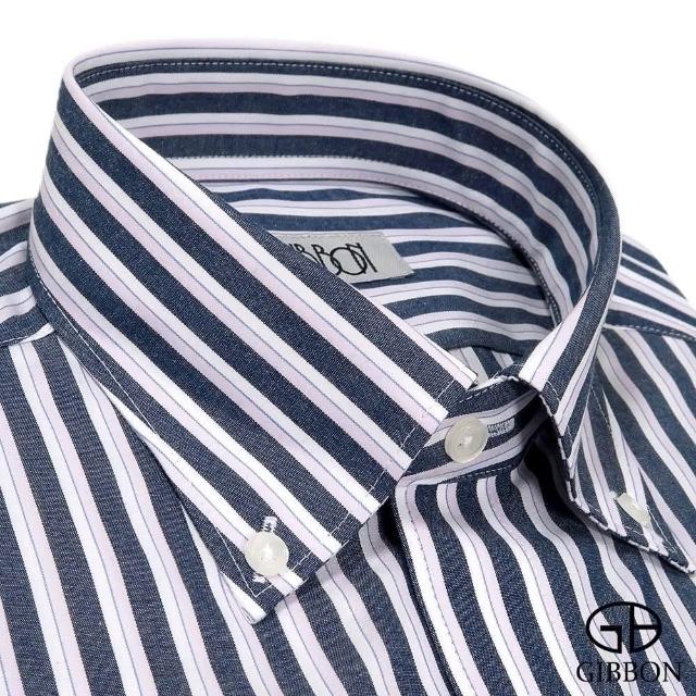GIBBON 吉朋輕商務修身長袖襯衫‧深藍條