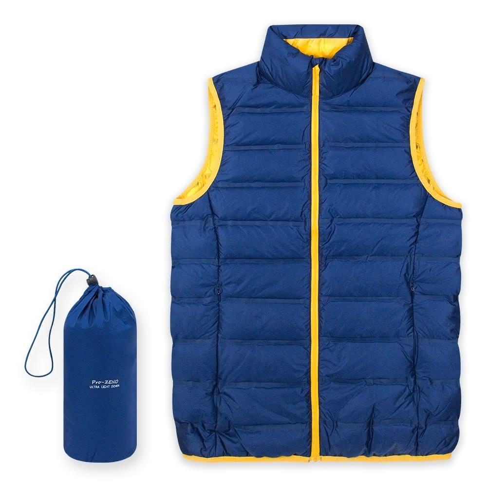 ZENO 傑諾男款極輕暖無縫羽絨背心‧軍藍