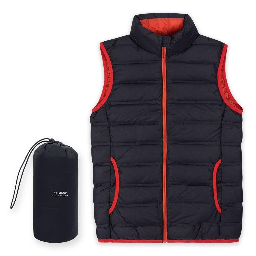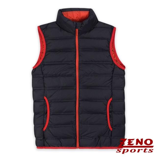 ZENO 傑諾男款極輕暖無縫撞色羽絨背心‧個性黑