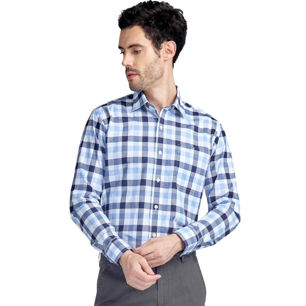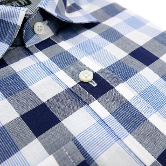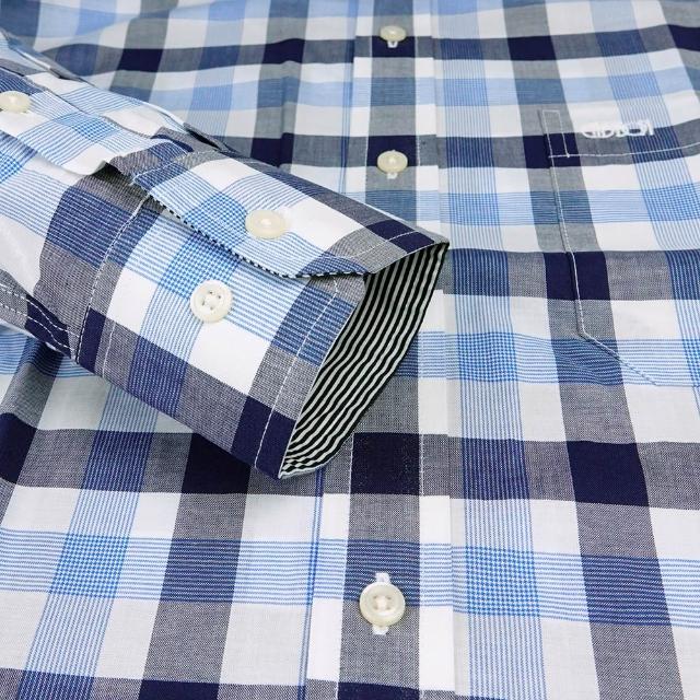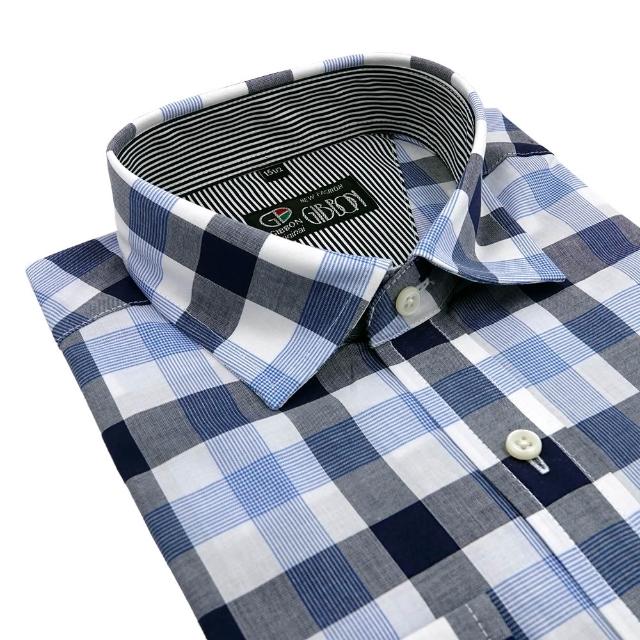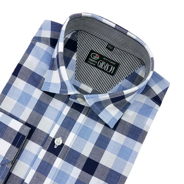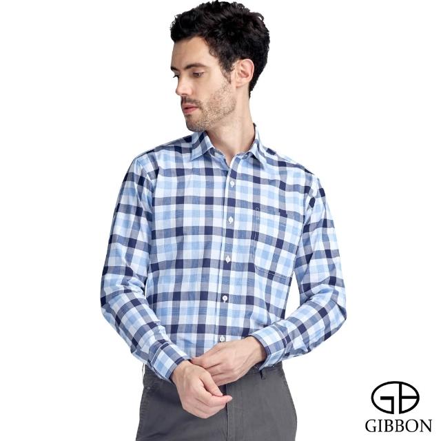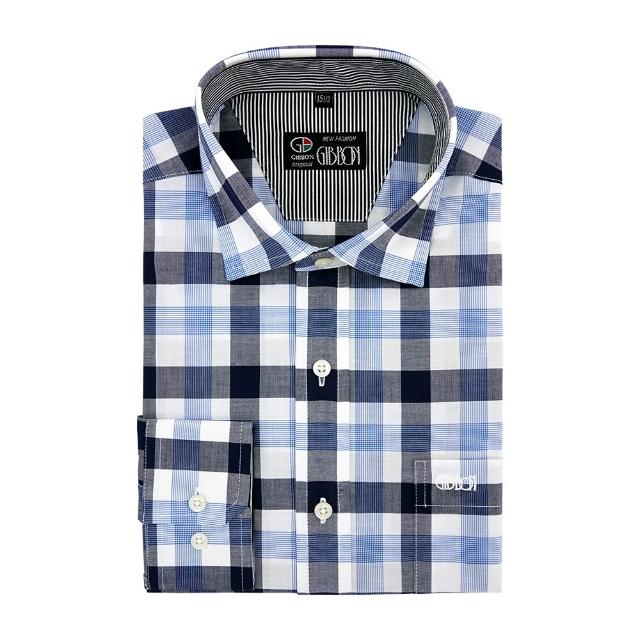 GIBBON 吉朋光影感 藍圖格紋 舒適純棉 商務休閒長袖襯衫 黑藍格