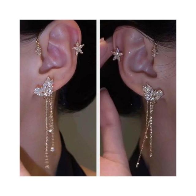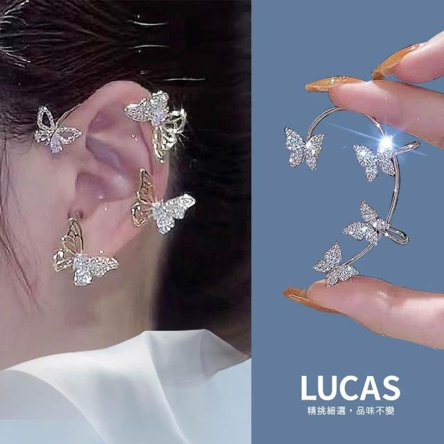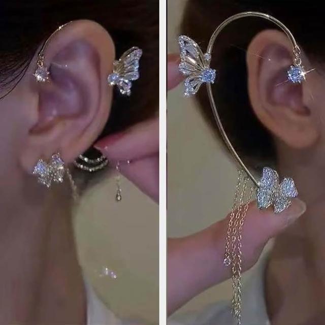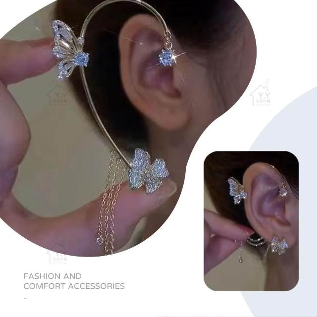 耳掛式耳環 耳掛 耳骨夾 超閃鑲鑽蝴蝶耳夾 一體耳飾 蝴蝶耳夾 無耳洞耳夾 夾式耳環 造型耳掛 一體式耳環 耳掛耳環