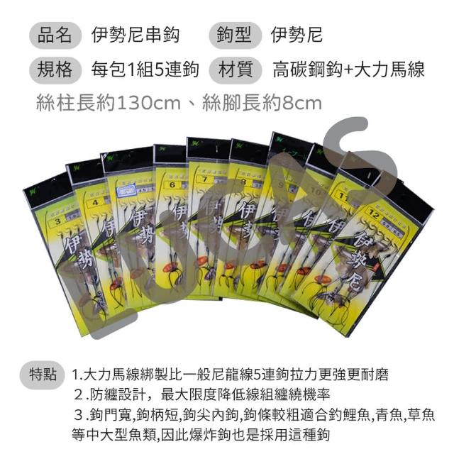 伊勢尼防纏5連鉤 線組 釣組 串鉤
