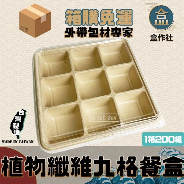 盒作社 植物纖維九格餐盒 箱購免運200組 九宮格/日式餐盒/外帶餐盒/一次性餐盒/免洗餐具/環保餐盒