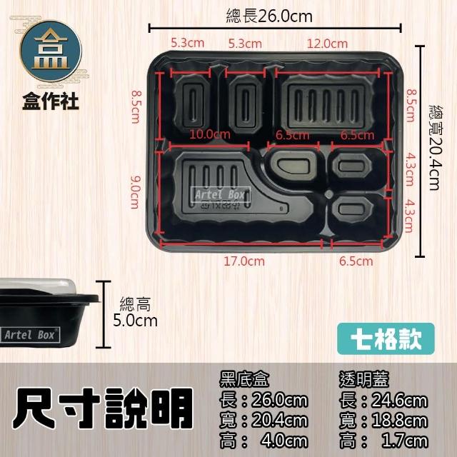 盒作社 內嵌式七格餐盒537 黑色塑膠餐盒/可微波餐盒/外帶餐盒/一次性餐盒/免洗餐具/環保餐盒/日式餐盒/便當盒