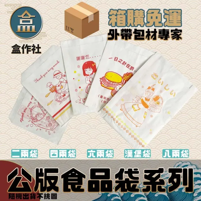 盒作社 公版防油紙袋系列 箱購免運優惠中 4兩/6兩/8兩/漢堡袋/薯條袋/食品袋/防油袋/紙袋/炸物袋