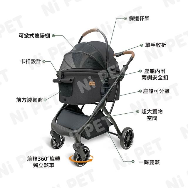 Ni Pet 樂派特T100 Plus分離式寵物推車(座艙分離 雙開頂篷 貓狗適用 兩色可選)
