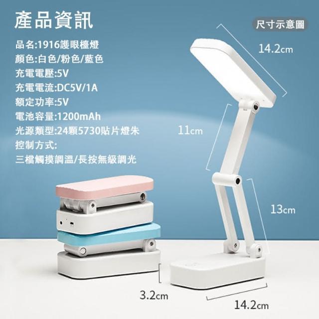 G.SIN多功能LED護眼摺疊檯燈 無段調光1916(三檔色溫)