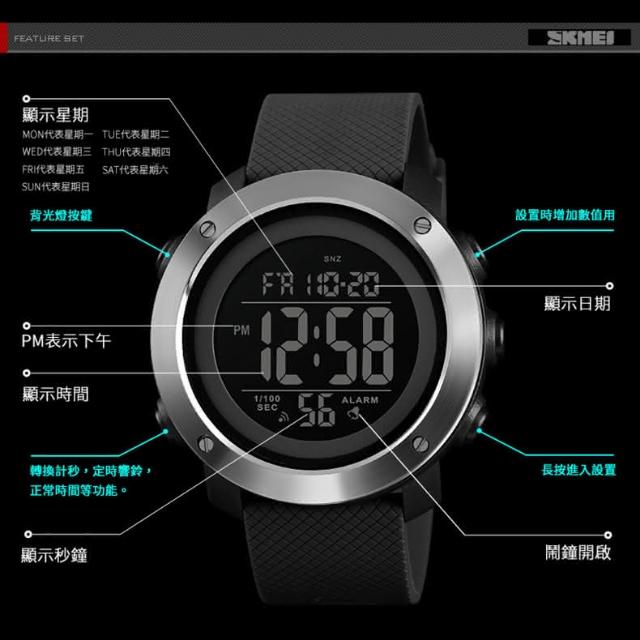 SKMEI 時刻美不鏽鋼圈簡約電子錶 休閒運動錶 1416(防水多功能錶 男女中性錶 學生錶 手錶)