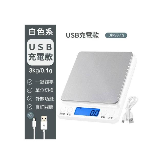 G.SIN電子秤 充電款 廚房秤 咖啡秤 附托盤(電子磅秤 廚房秤 3000g 3kg)