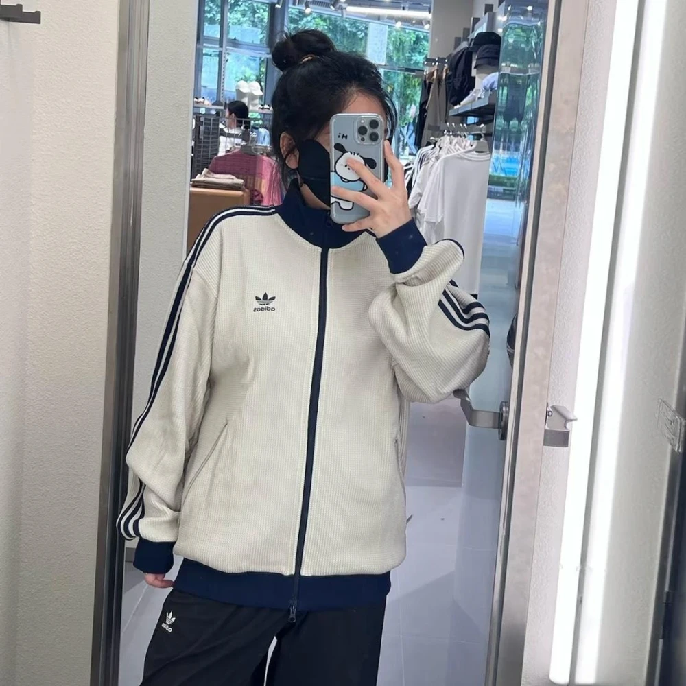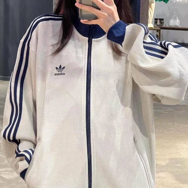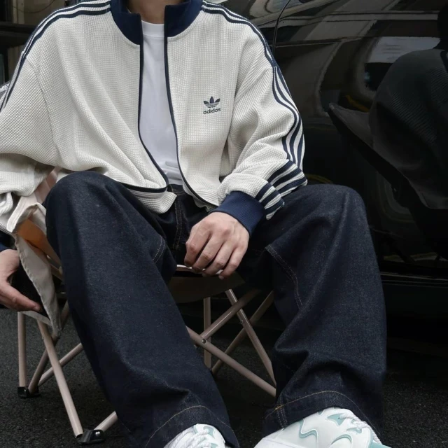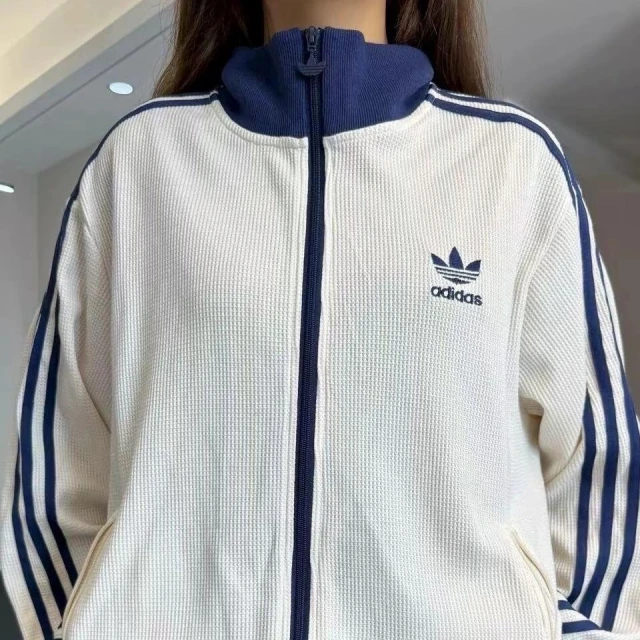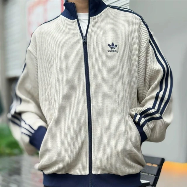 adidas 愛迪達Adidas Originals 立領 針織 華夫格外套 米白藍 男女同款 KC2618