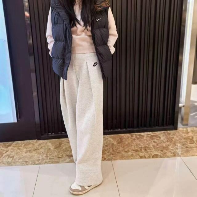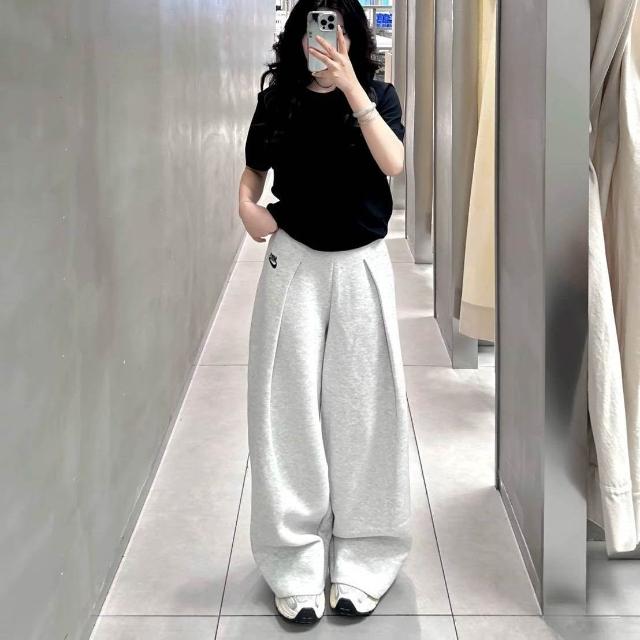 NIKE 耐吉NIKE SPORTSWEAR TECH FLEECE 灰色 皺摺 太空棉褲 寬褲 長褲 女款 FV8053-338