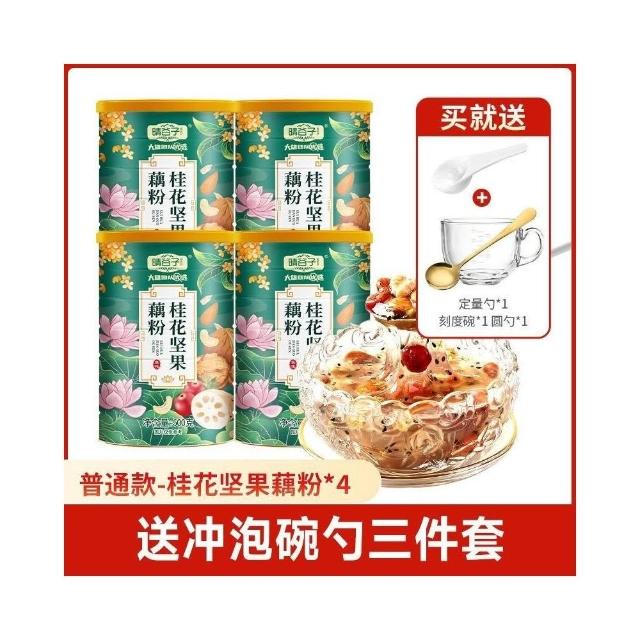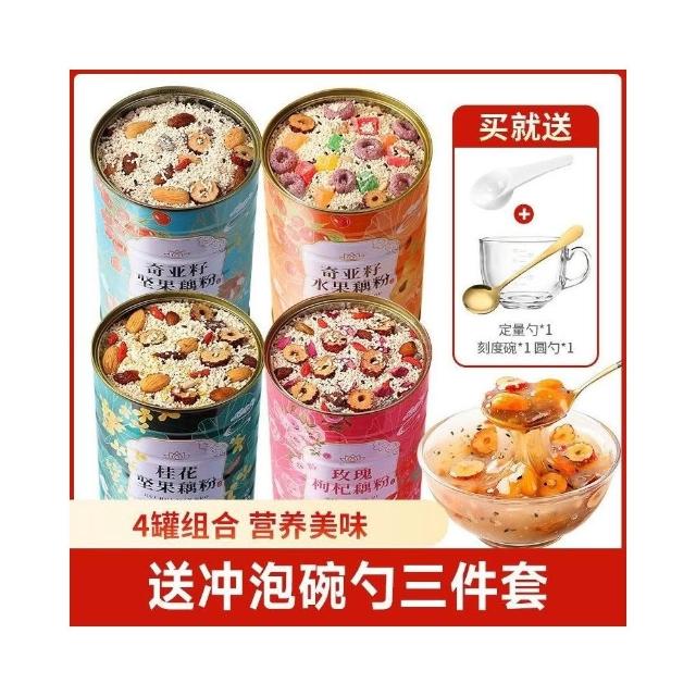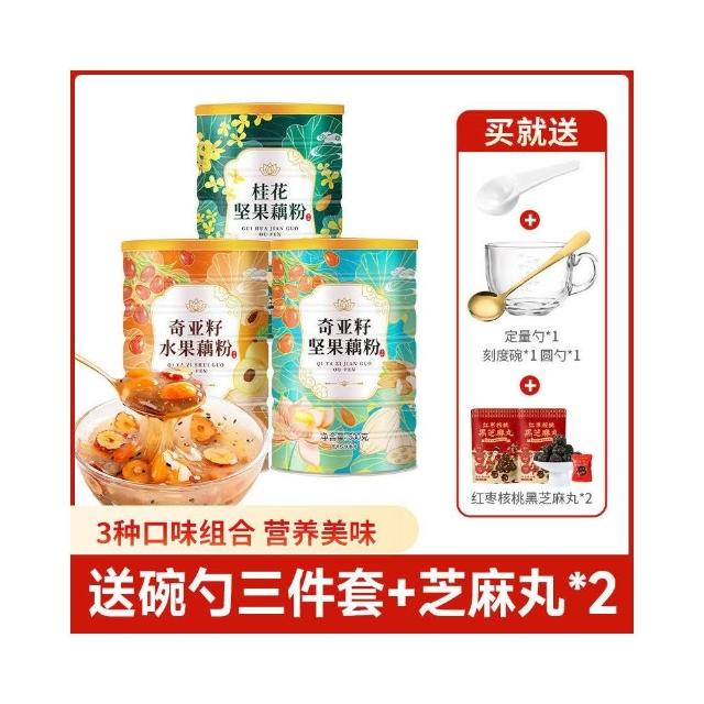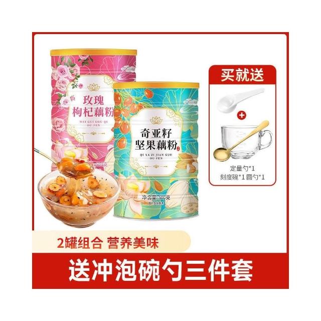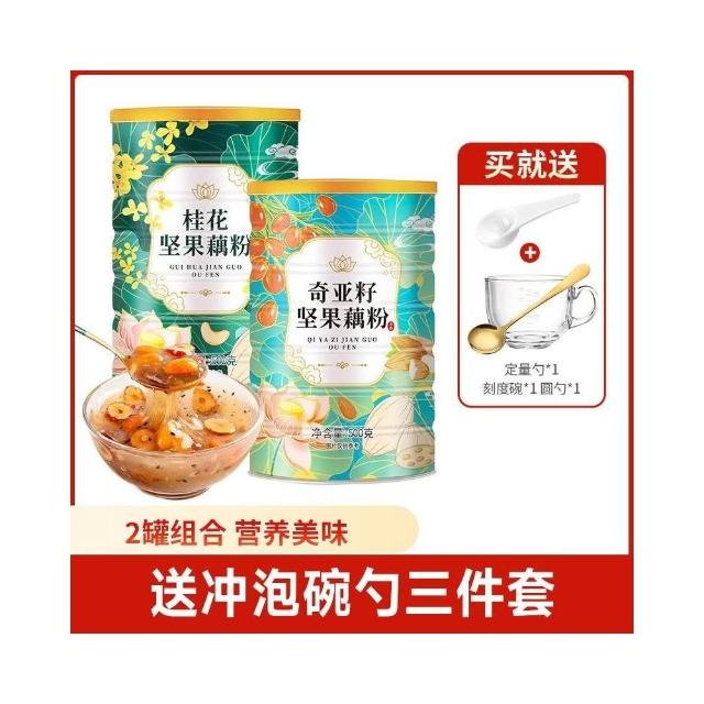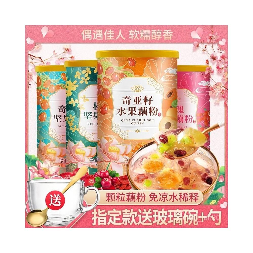 饞甄選 【送碗勺堅果藕粉羹罐裝速溶水果堅果藕粉奇亞籽藕粉羹衝泡卽食