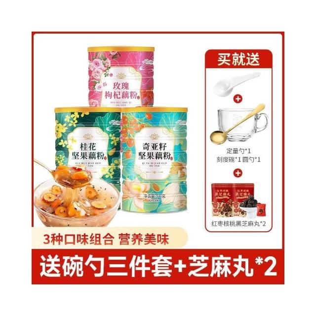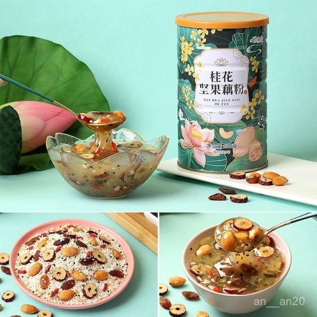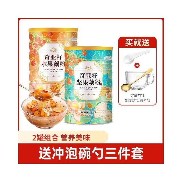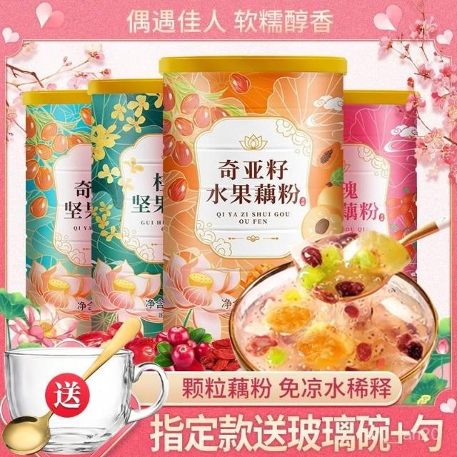 饞甄選 【送碗勺堅果藕粉羹罐裝速溶水果堅果藕粉奇亞籽藕粉羹衝泡卽食