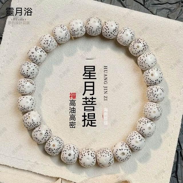 明明嚴選海南星月菩提手串男款單圈高密順白五指山正月留白佛珠文玩手鍊女