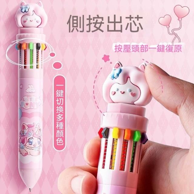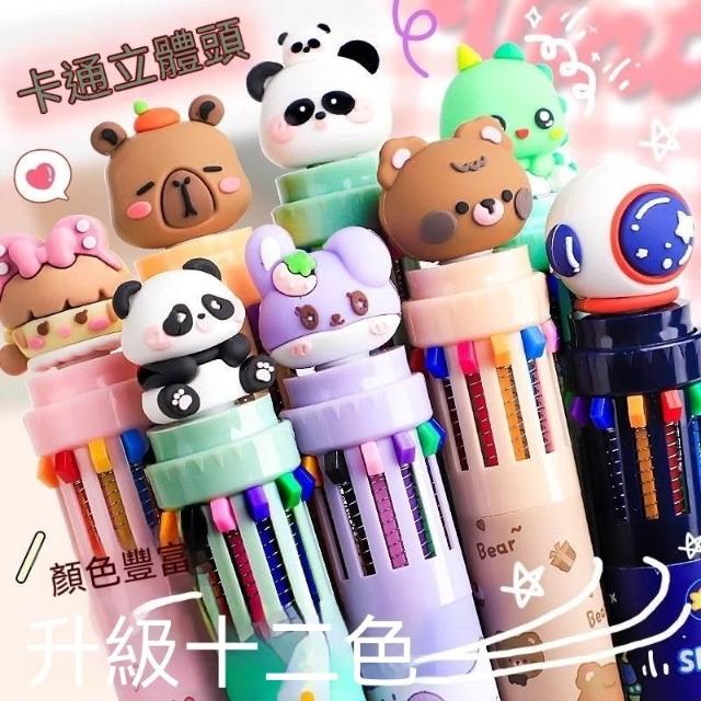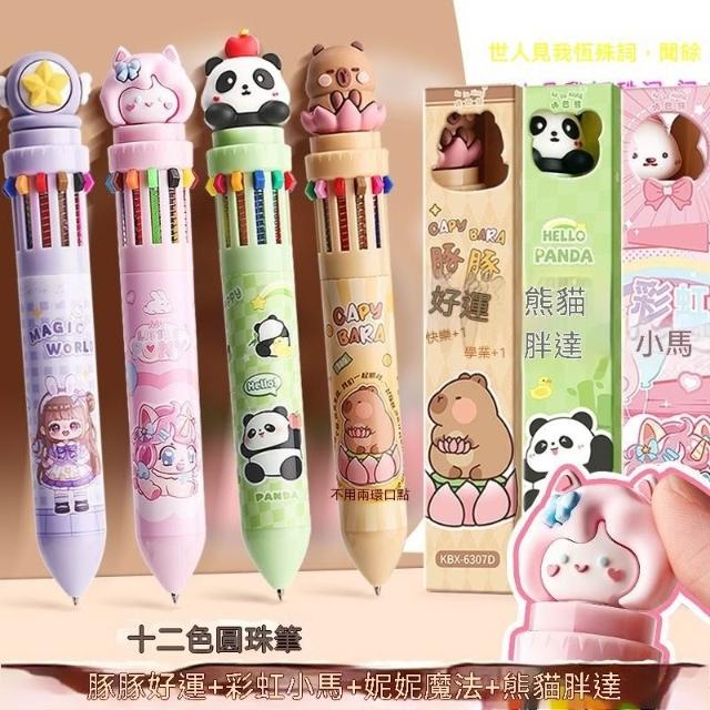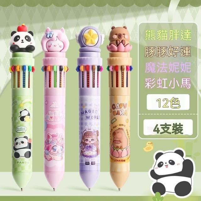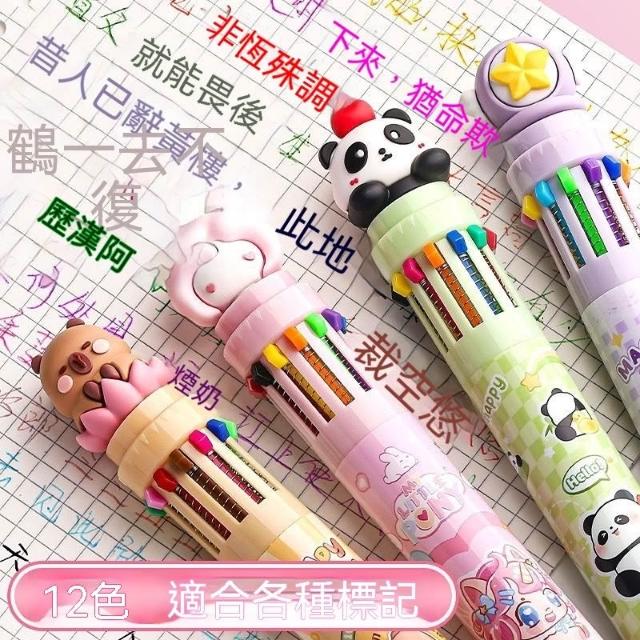 明明嚴選12色圓珠筆多色按動卡通可愛創意顏色筆按壓多頭式彩色多功能標記