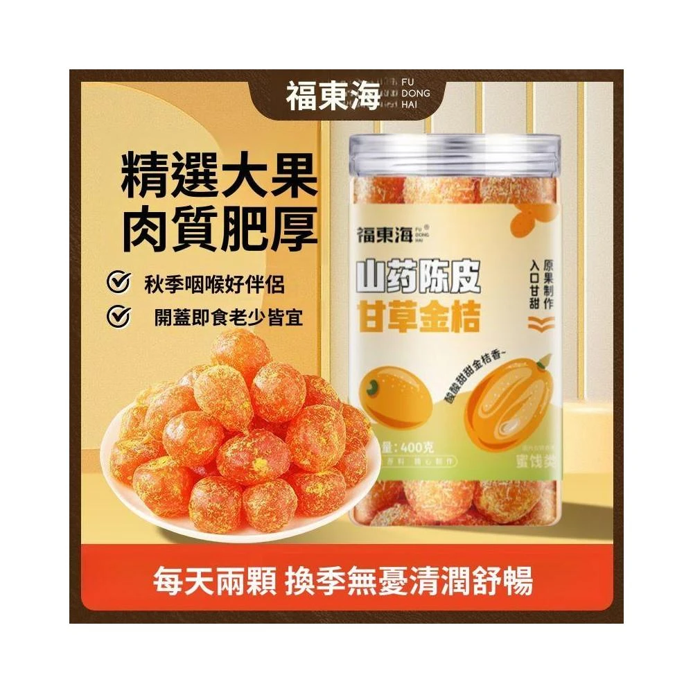 贝贝甄選【福東海】山藥陳皮甘草金桔400g清涼喉嚨清潤即食蜜餞果脯滋補經典方