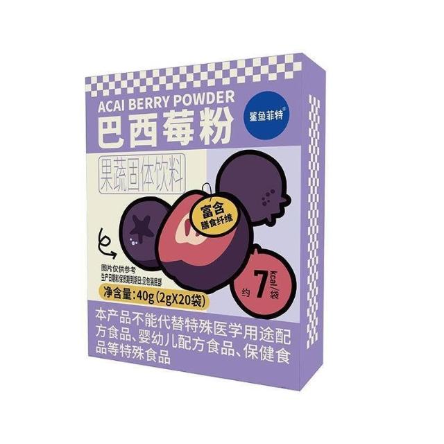 鯊魚菲特巴西莓粉40g花青素0脂肪富含膳食纖維果蔬飲料速溶衝飲粉