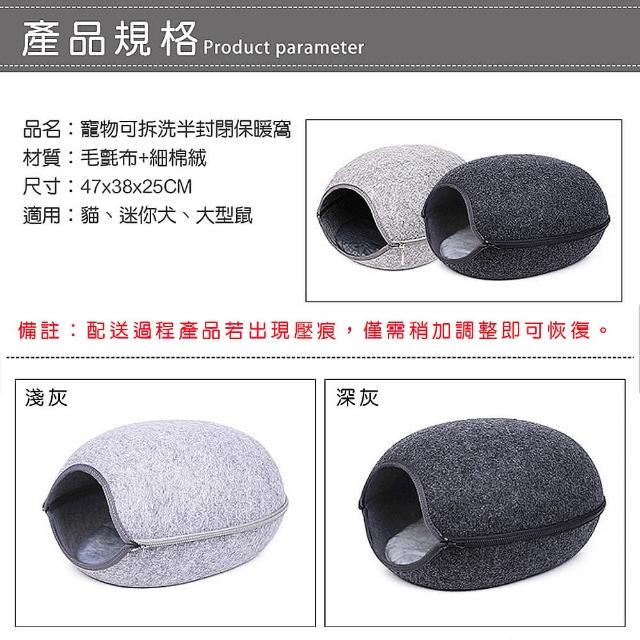 典贊創意寵物可拆洗半封閉四季窩(附暖墊羊毛氈寵物窩貓窩狗窩四季通用保暖貓狗兔龍貓寵物用品)