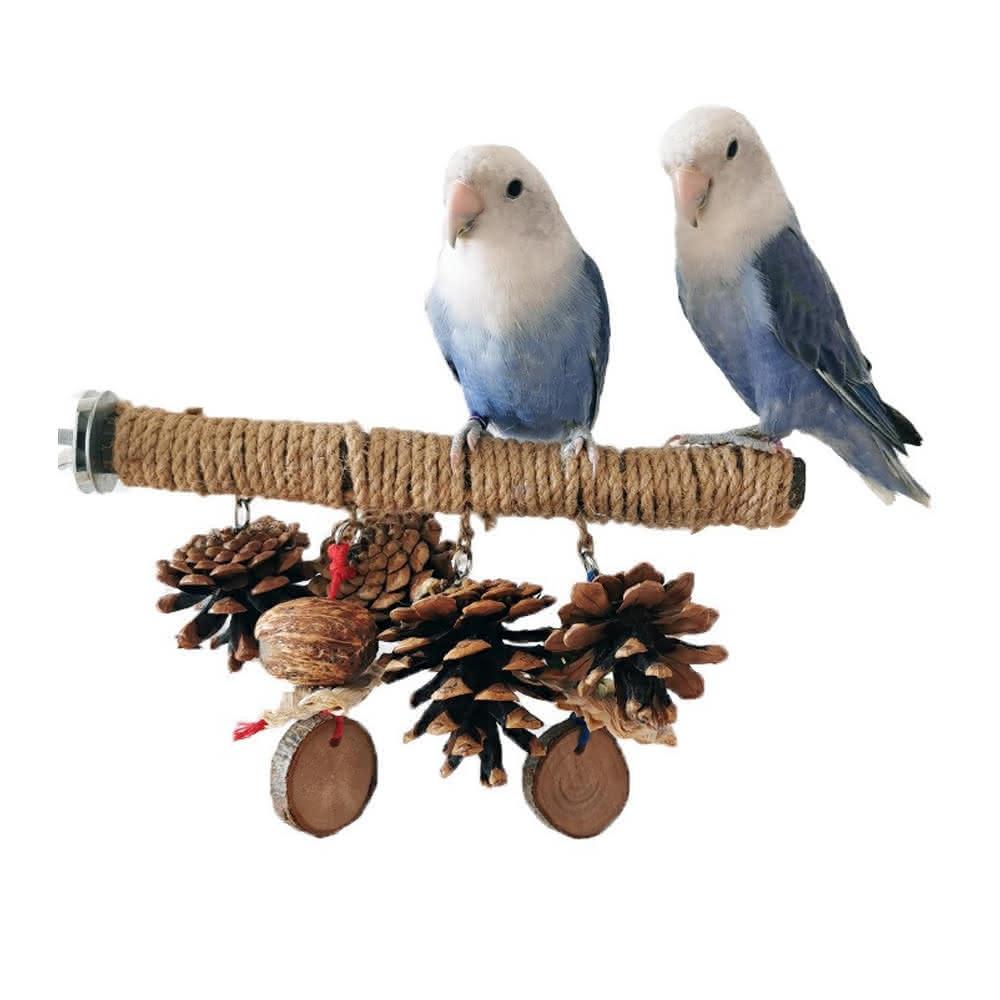 典贊創意鸚鵡站杆麻繩果木串啃咬玩具(蘋果木松果玉米草編 鸚鵡玩具 鸚鵡用品 鳥用品 磨牙魔爪 鳥玩具)