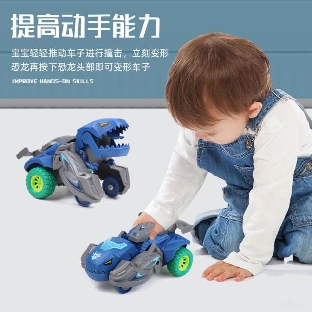 隔日到貨 恐龍變形車 碰撞變形車 霸王龍恐龍車 慣性玩具車 兒童恐龍汽車 暴龍旋轉車