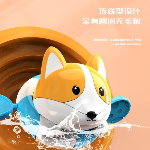隔日到貨 萌趣柯基洗澡玩具 拉線發條玩具 浴室玩具 寶寶沐浴玩具 狗狗玩具 可愛小狗