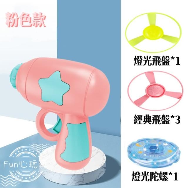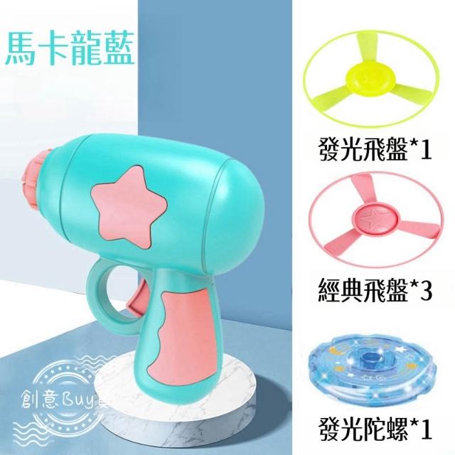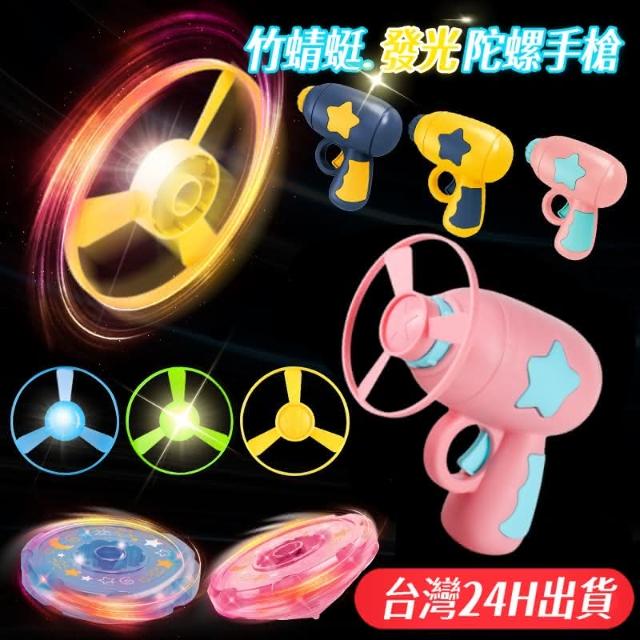 台灣現貨 發光陀螺槍 竹蜻蜓手槍 逗貓飛盤槍 飛碟玩具 兒童玩具 飛行發光玩具 飛天玩具 戶外露營玩具 飛碟陀螺發射器