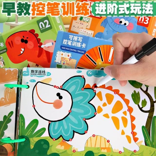 隔日到貨 可擦寫控筆訓練本 兒童控筆訓練卡 運筆繪畫冊 握筆矯正器 運筆練習簿子 幼兒練字帖 卡通畫線書 數字圖畫字母
