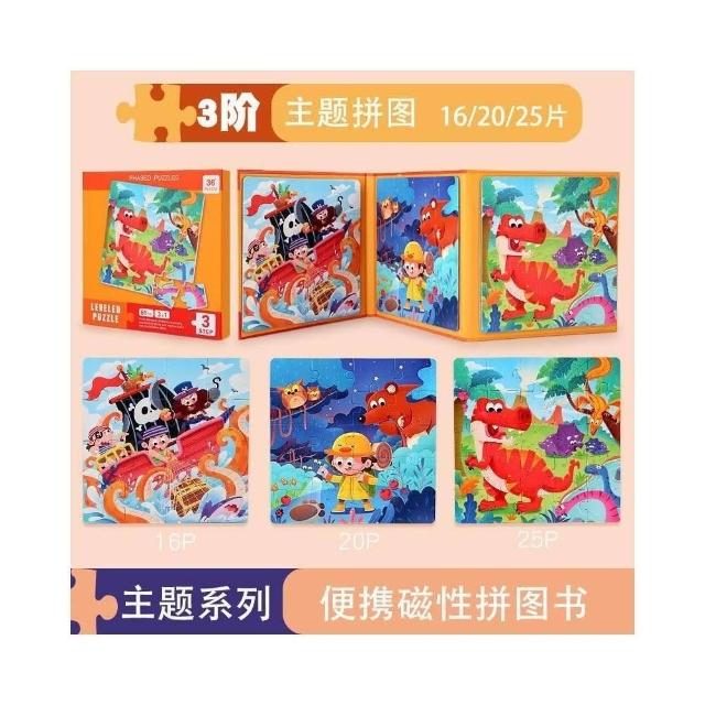 隔日到貨 拼圖書 兒童磁力拼圖書 磁鐵幼兒拼圖書 磁性益智拼圖 進階拼圖玩具 兒童卡通拼圖 動物 恐龍 水果 公主 車